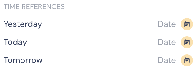 - Yesterday [Date]: format YYYY-MM-DD