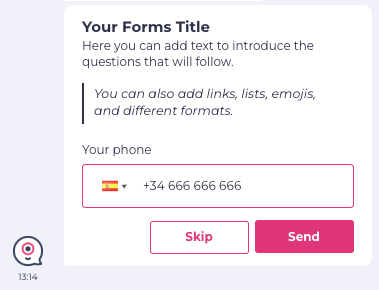 Required field? β Makes the phone number mandatory, the user is not able to skip it.