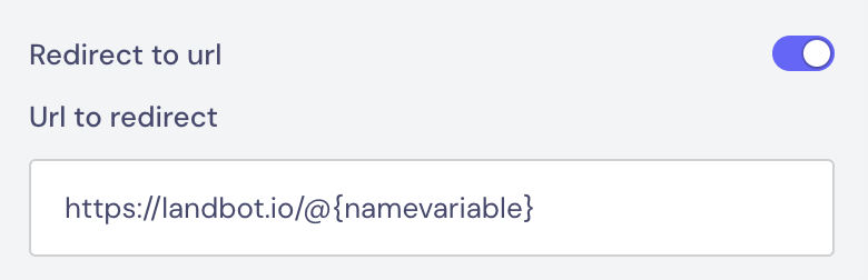You can use Fields in the URL to create dynamic redirects based on user input. You can also store the entire destination URL in a Field and reference it directly, like @redirect_url.