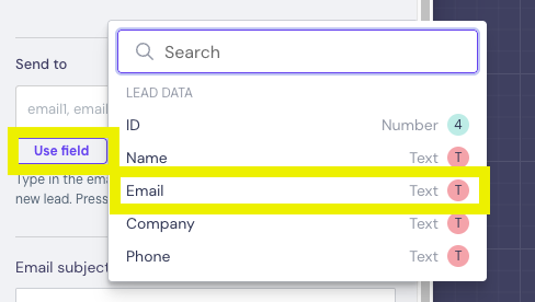 Dynamic email from a field – Use a field collected in your bot (e.g., @email