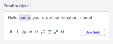 Add a clear and concise subject line that tells the recipient what the email is about. You can also include fields (e.g., @name