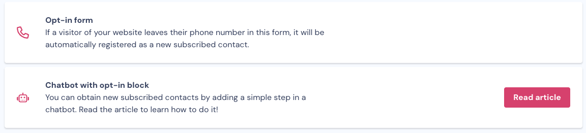 - Make sure to get the User's authorization (Opt-in) to be contacted