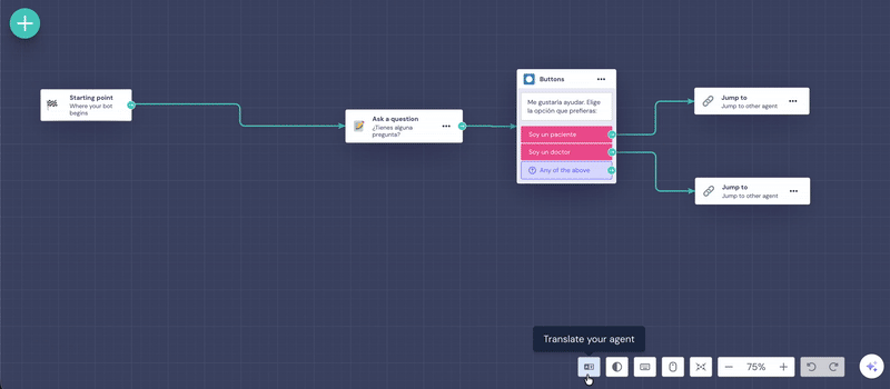 AI Agents in Landbot can automatically detect and respond in the user’s language, making them ideal for multilingual experiences. Unlike rule-based bots, you don’t need to create separate flows for each language - the AI can understand user input and reply appropriately in the same language 🪄