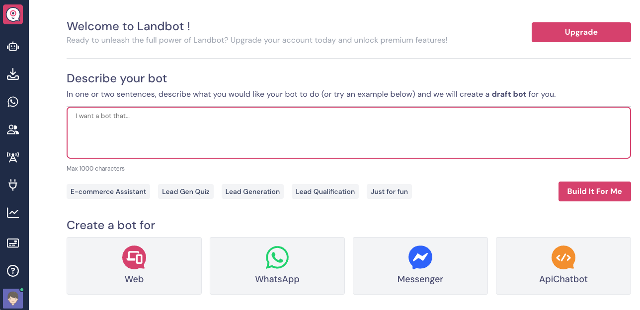 Landbot is a no-code chatbot platform that allows you to create the best conversational experiences for your customers. With Landbot, you can build AI Agents and rule-based chatbots, or combine both to better suit your business π