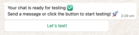 5️⃣ You’ll receive a WhatsApp message on your phone. Tap “Let’s test” to trigger the bot.