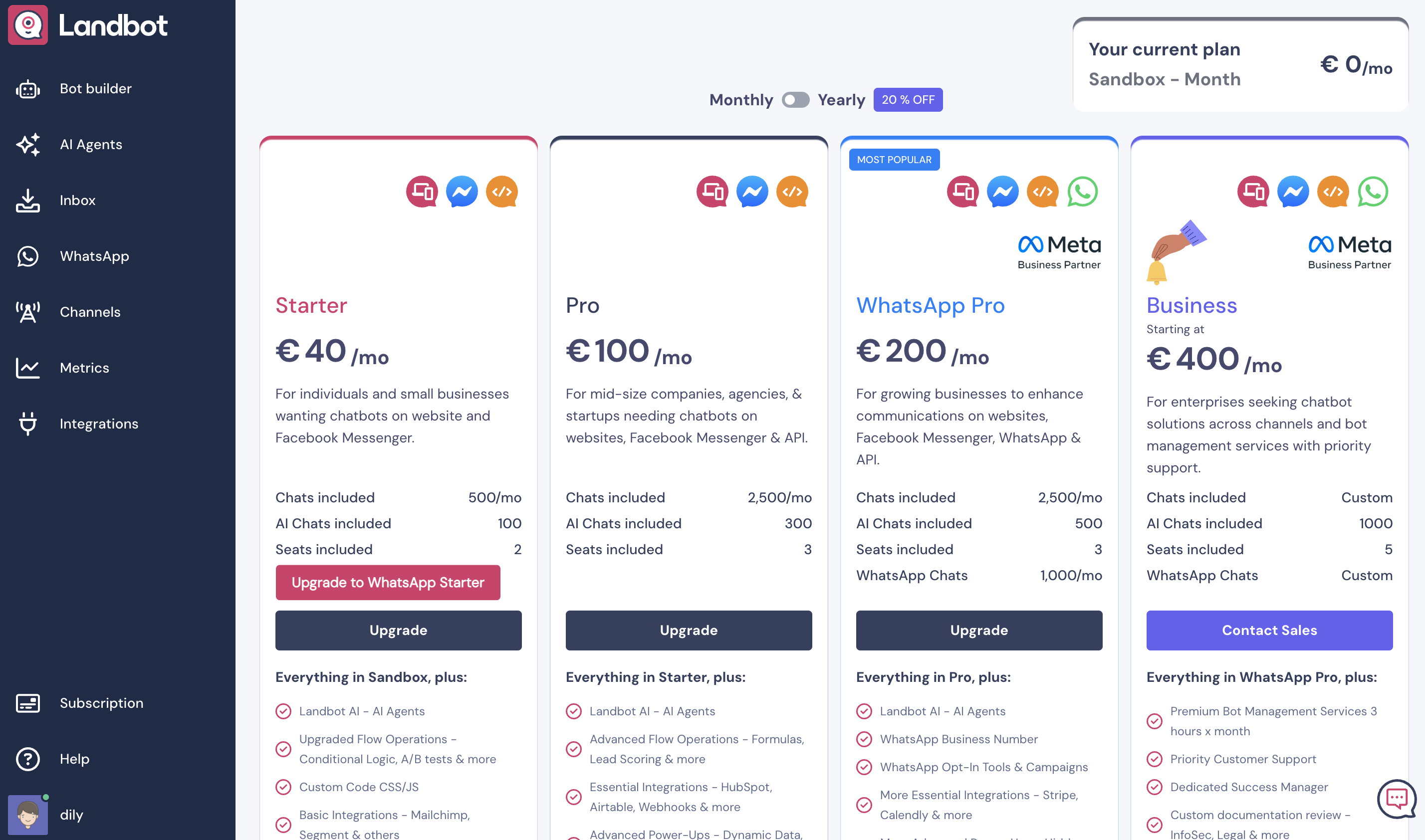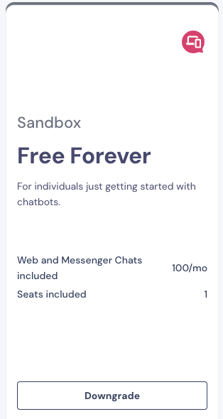If you choose the Sandbox (free) plan, you'll be redirected to a bot that will ask you the reason for your Downgrade (cancellation of subscription). This information is of great value to us, since it'll surely help us improve!