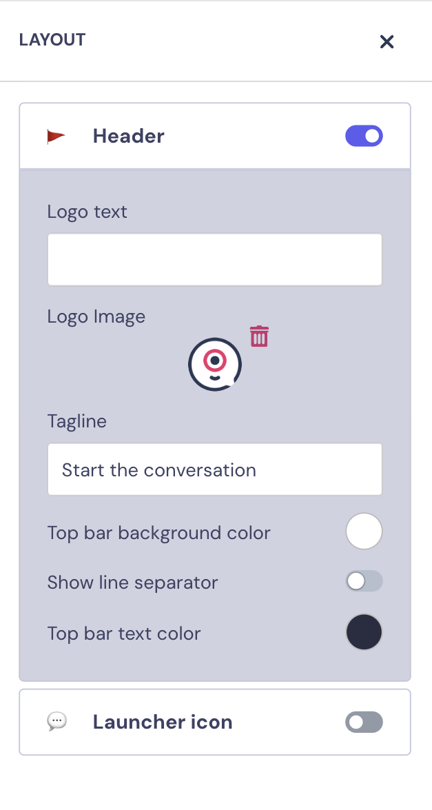 You can customize your Logo, Avatar, and Bubble Launcher Icon.