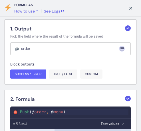 At the beginning of the flow we will create 2 fields, order and sum. Order will be an array that will save the user's orders, and sum will hold the total amount the user has to pay.